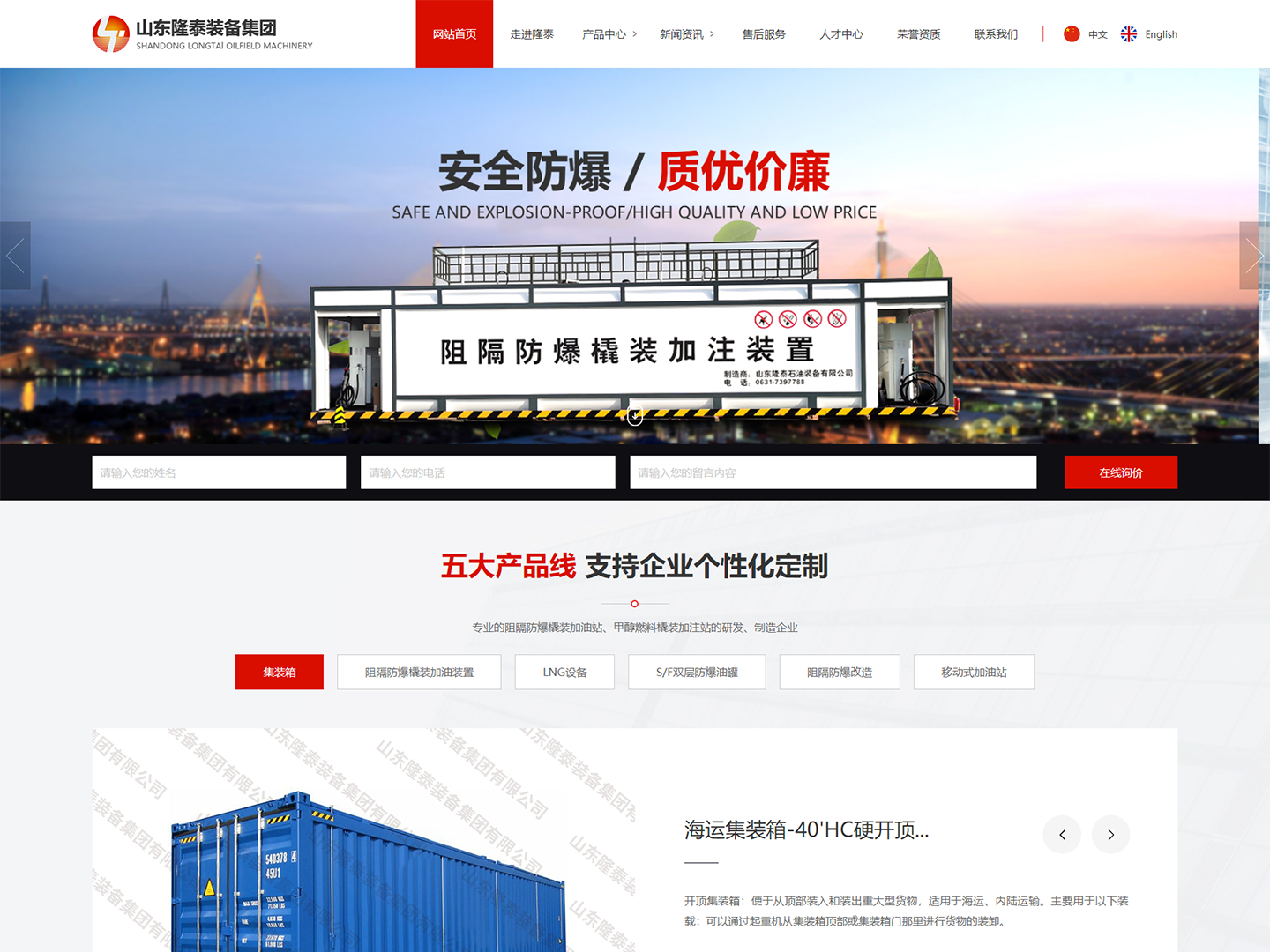 山东隆泰装备集团有限公司由船舶制造公司转型而来,是专业生产防爆撬装加注站的厂家之一。2007年公司引入国外先进的防爆理念,通过自主研发创新与生产资质申报,于2012年成功将防爆撬装加注站推向市场,并得到国家及地方安全部门的认可。
